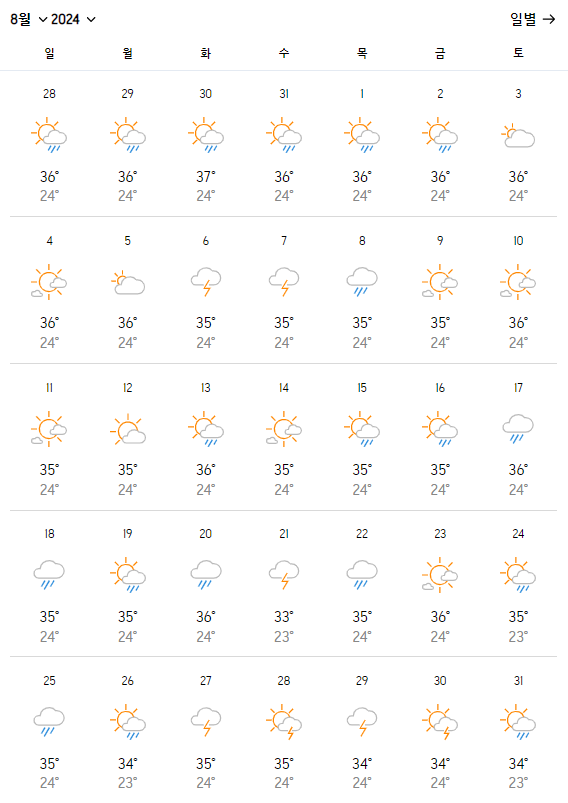이 시기 평균 기온은 28~32도로 매우 높고, 습도도 80% 이상을 기록합니다.