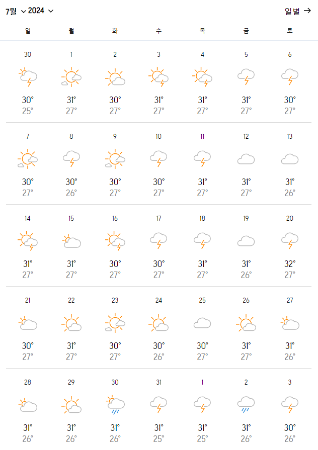 7월은 사이판의 성수기로, 이 시기 날씨 정보는 여행을 계획하는 이들에게 매우 유용한 정보가 될 것입니다.