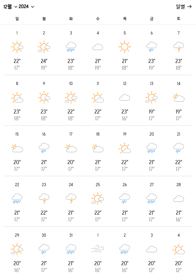 오키나와의 12월은 온화한 기후와 아름다운 자연경관 덕분에 여행하기에 적합한 시점입니다. 낮에는 따뜻한 날씨를 즐길 수 있지만, 아침과 저녁의 기온 차이를 고려해 적절한 복장을 준비해야 합니다. 또한, 크리스마스와 연말 행사로 인해 더욱 특별한 경험을 할 수 있는 기회가 많은 이 시기에 오키나와를 방문한다면, 잊지 못할 추억을 만들 수 있을 것입니다. 여행 계획을 세울 때 날씨 정보를 잘 확인하고 준비한다면, 오키나와의 매력을 충분히 만끽할 수 있을 것입니다. 🌺