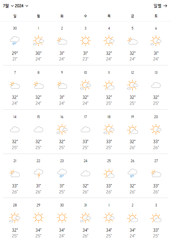- 7월은 장마철이 진행 중일 수 있어 비가 자주 내림