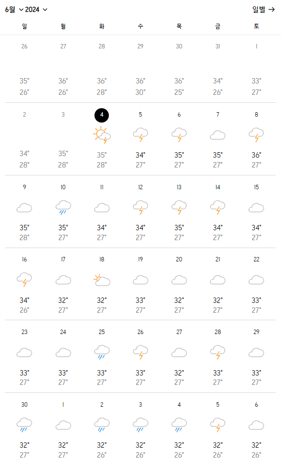 🥵 6월은 여름 시작 시기로 기온이 높고 습도가 높아 체감 온도가 매우 높습니다.